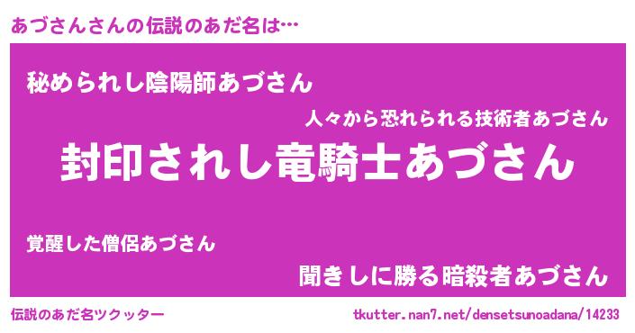 | 2回繰り返すあだ名 | 『あづあづ』『だらんだらん』 |