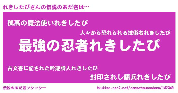 | 胡散臭い通販商品みたいなあだ名 | 『あなたにだけ特別に提供する限定10本のレアな日本酒…その名も「れきしたび」』 |