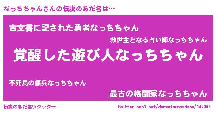 | 男性向けラノベタイトル風あだ名 | 『うちのなっちちゃんが世界を掌握している!』 |