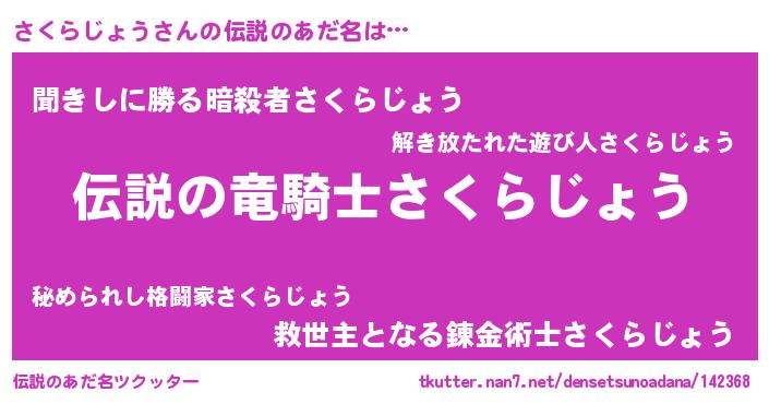 | 胡散臭い通販商品みたいなあだ名 | 『必ず成功するブレスレット…その名も「さくらじょう」』 |