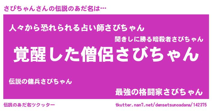 | 意味不明あだ名 | 『住所不定無職さびちゃん(65歳)』 |