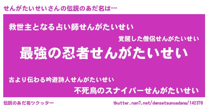 | 意味不明あだ名 | 『住所不定無職せんがたいせい(39歳)』 |