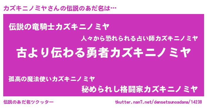 | 意味不明あだ名 | 『永久保存カズキニノミヤ』 |