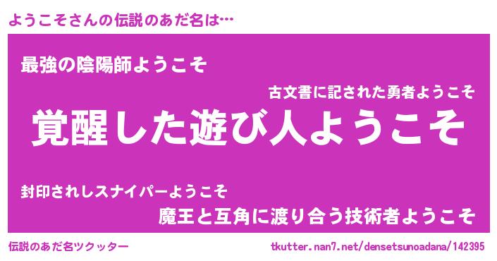 | 意味不明あだ名 | 『とにかく怪しいようこそ』 |