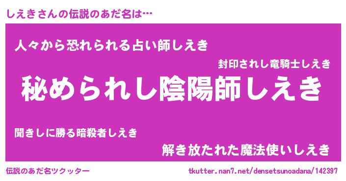 | 女子向けラノベタイトル風あだ名 | 『しえきなんてお断りですっ。』 |