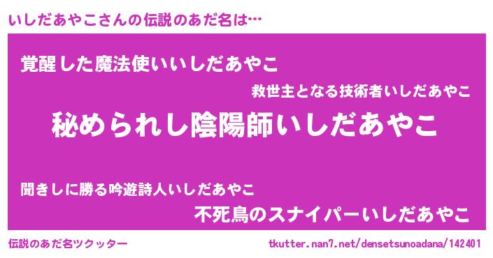 | ヒーロー風カッコイイあだ名 | 『ウルトラいしだあやこマン』 |