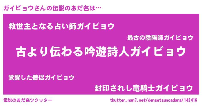 | 意味不明あだ名 | 『永久保存ガイビョウ』 |