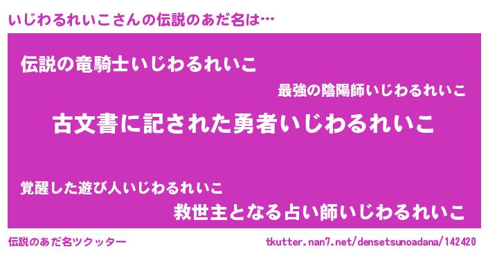 | ヘコむあだ名 | 『いじわるれいこ(苦笑)』『いじふぇ~』 |