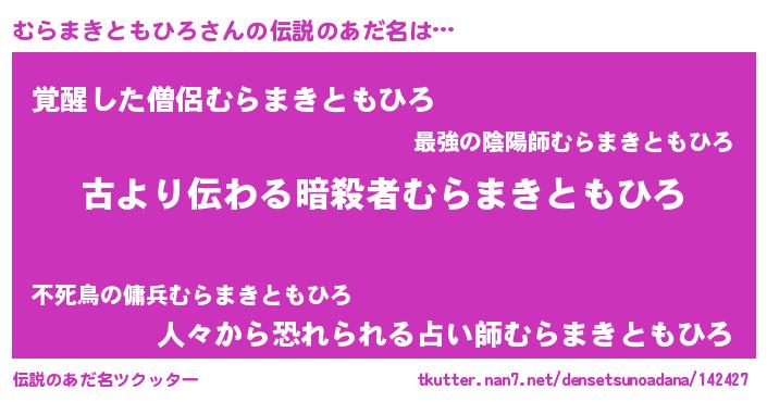 ヘコむあだ名 | 『むらまきともひろ(爆)』『むら太郎』 |