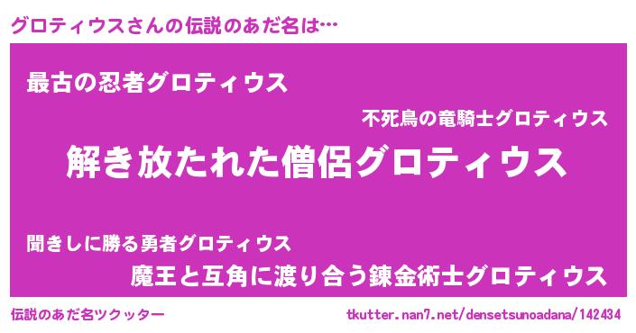 | ヒーロー風カッコイイあだ名 | 『銀牙騎士グロ』『愛の使者グロティウス』 |