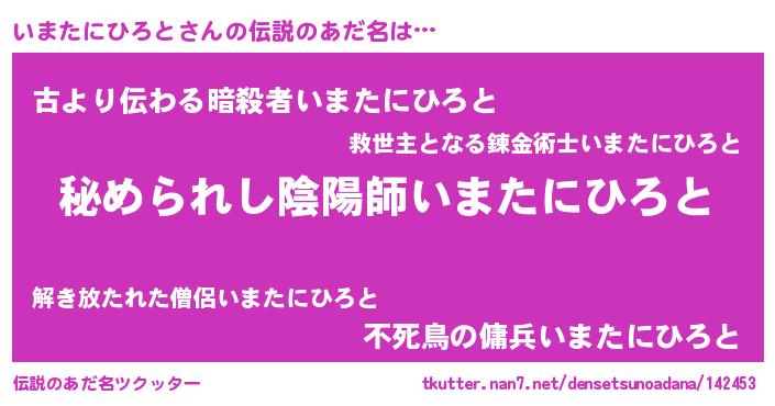 | 男性向けラノベタイトル風あだ名 | 『はたらくいまたにひろとさま!』 |