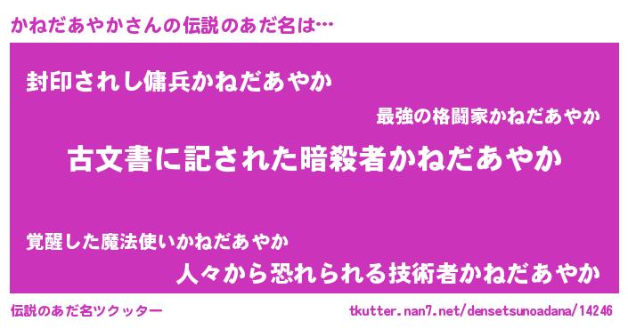 | 意味不明あだ名 | 『永久保存かねだあやか』 |