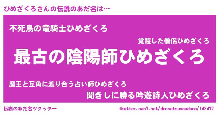 | ファンタジー風あだ名 | 『エターナルヒメザクロー』『ヒメフェル』 |