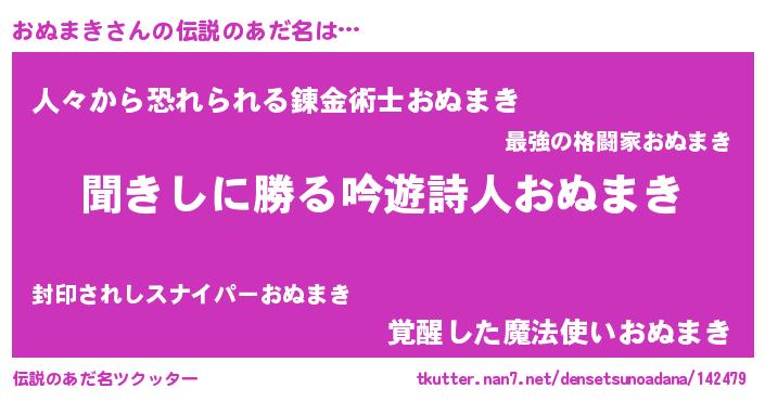 | 意味不明あだ名 | 『永久保存おぬまき』『自称おぬまき』 |