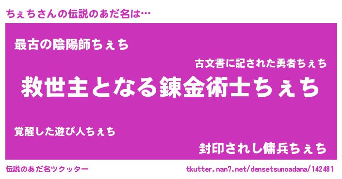 | ヒーロー風カッコイイあだ名 | 『慈愛の使者ちぇち』『スーパーチェチ』 |