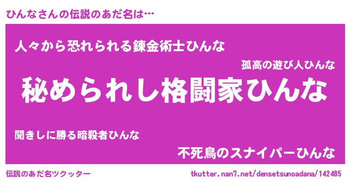 | ヒーロー風カッコイイあだ名 | 『ウルトラひんなマン』『スーパーヒンナ』 |