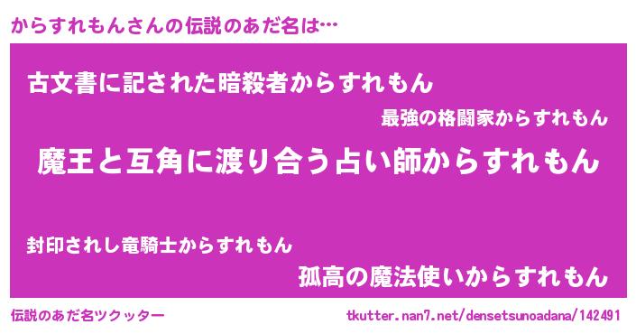 | ヒーロー風カッコイイあだ名 | 『友情の使者からすれもん』 |