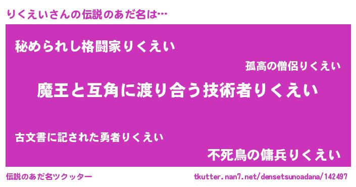 | ヒーロー風カッコイイあだ名 | 『愛の使者りくえい』『スーパーリクエイ』 |