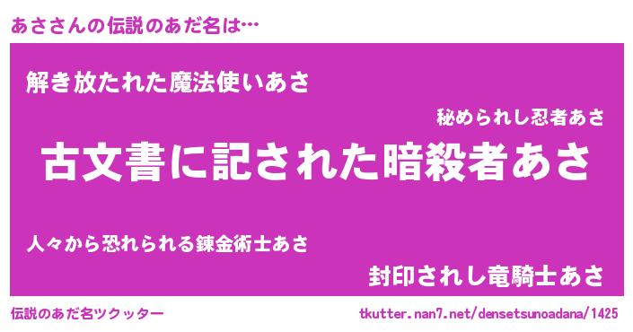 | 意味不明あだ名 | 『つくし科あさ属』『永久保存あさ』 |