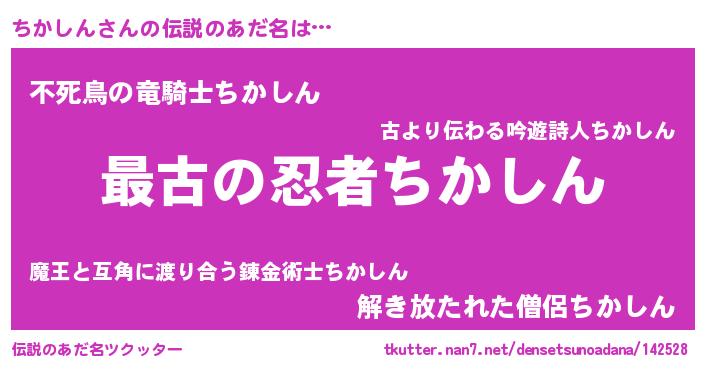 | ヒーロー風カッコイイあだ名 | 『ウルトラちかしんマン』『仮面チカダー』 |