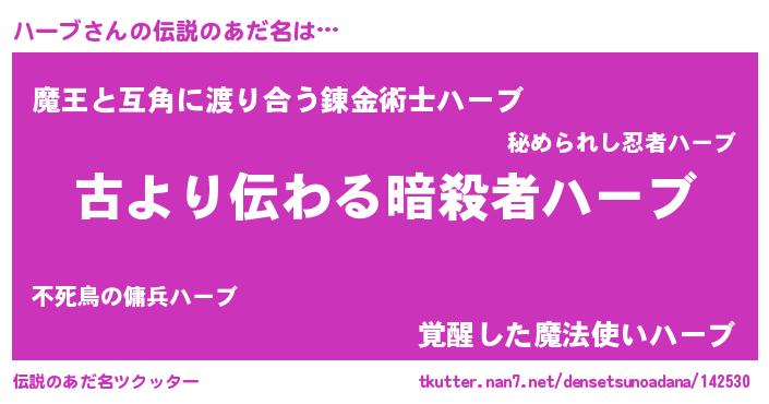 | ヒーロー風カッコイイあだ名 | 『ネオハーブ』『天空の使者ハーブ』 |