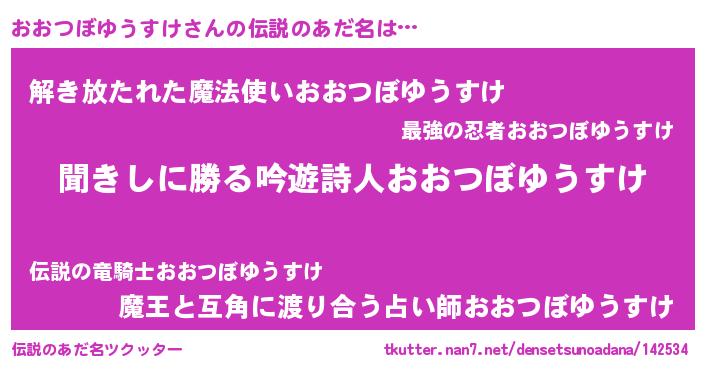 | 男性向けラノベタイトル風あだ名 | 『おおつぼゆうすけという概念が存在しない退屈な世界 』 |