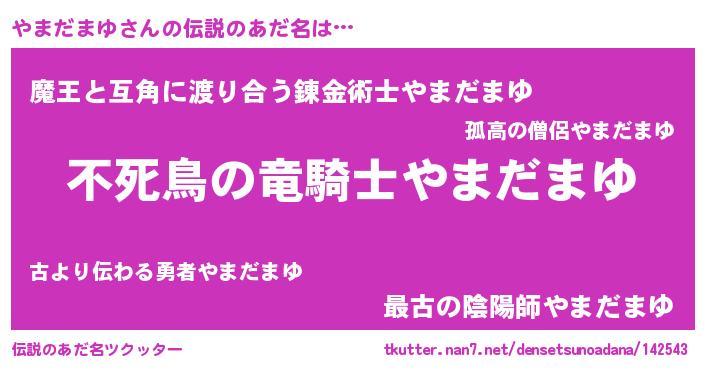 | 女子向けラノベタイトル風あだ名 | 『やまだまゆ姫と円卓の騎士』 |