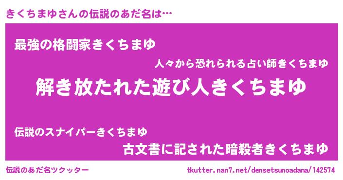 | 男性向けラノベタイトル風あだ名 | 『転生したらきくちまゆだった件』 |
