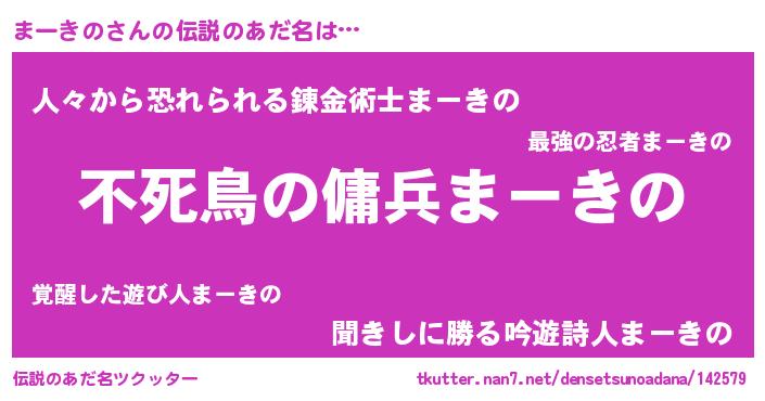| 女子向けラノベタイトル風あだ名 | 『まーきの姫と円卓の騎士』 |