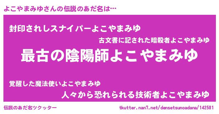 | 男性向けラノベタイトル風あだ名 | 『転生したらよこやまみゆだった件』 |