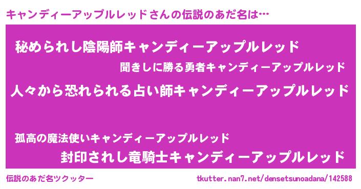 | ヒーロー風カッコイイあだ名 | 『正義の使者キャンディーアップルレッド』 |