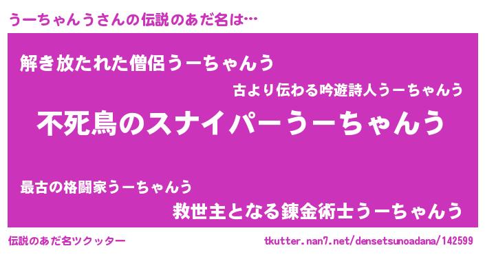 | 男性向けラノベタイトル風あだ名 | 『ウーチャンウアートオンライン』 |