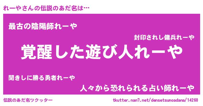 | 男性向けラノベタイトル風あだ名 | 『れーやの嫁は女の子じゃないと思った?』 |