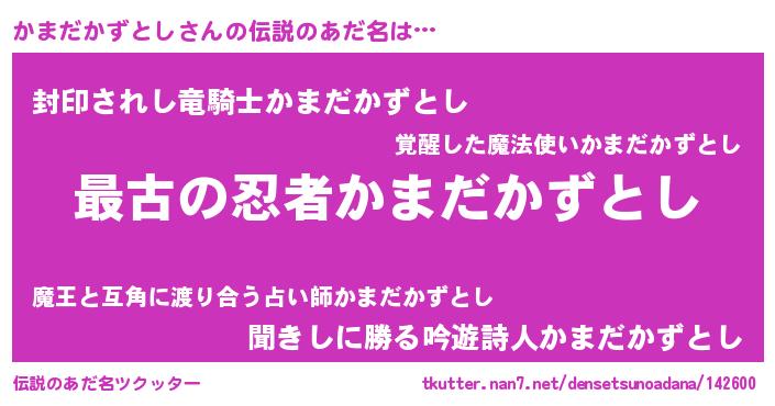 | ファンタジー風あだ名 | 『エターナルカマダカズトシー』 |