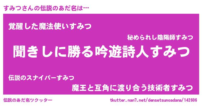 | ヒーロー風カッコイイあだ名 | 『ネオスミツ』『天弓騎士スミ』 |