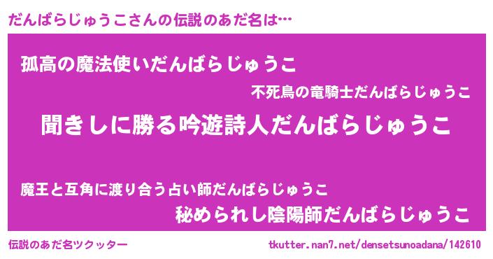 | 意味不明あだ名 | 『住所不定無職だんばらじゅうこ(8歳)』 |