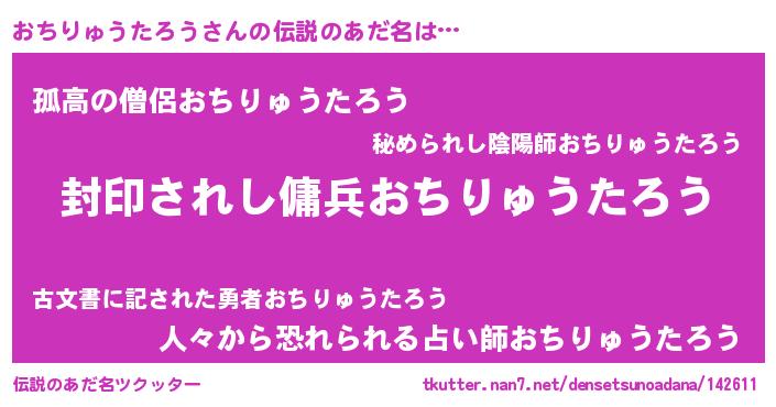 | 男性向けラノベタイトル風あだ名 | 『オチリュウタロウアートオンライン』 |