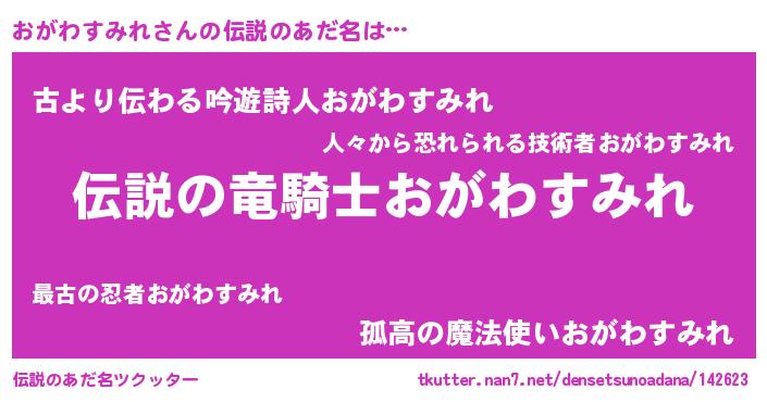 | 欧米人風あだ名 | 『マイケルおがわすみれ』 |