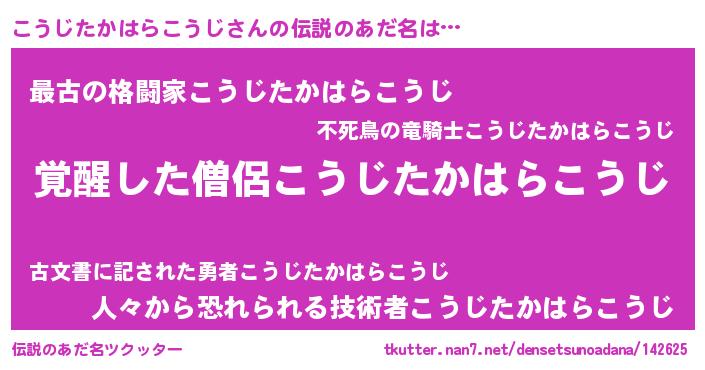 | 女子向けラノベタイトル風あだ名 | 『こうじたかはらこうじ様がみてる』 |