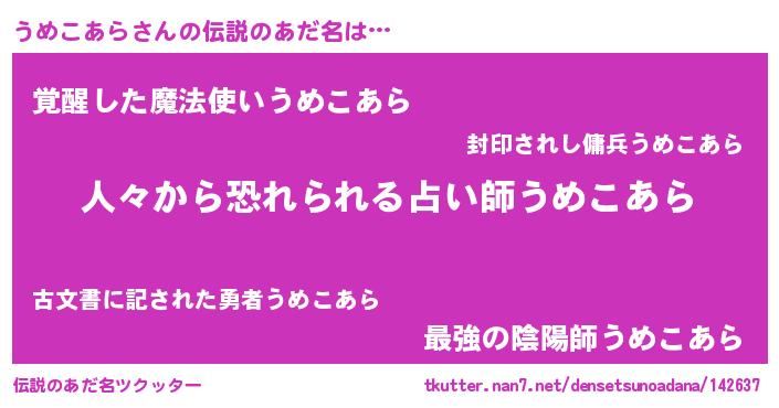 | ヒーロー風カッコイイあだ名 | 『正義の使者うめこあら』『幻影騎士ウメ』 |