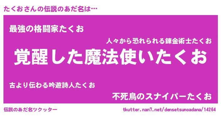 | 意味不明あだ名 | 『とにかく怪しいたくお』『自称たくお』 |