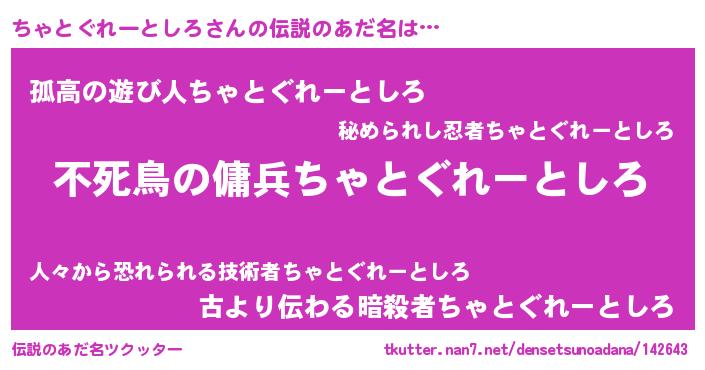 | 肩書あだ名 | 『ちゃとぐれーとしろCEO』 |