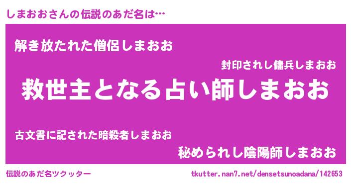 | ヒーロー風カッコイイあだ名 | 『天空の使者しまおお』『幻影騎士シマ』 |