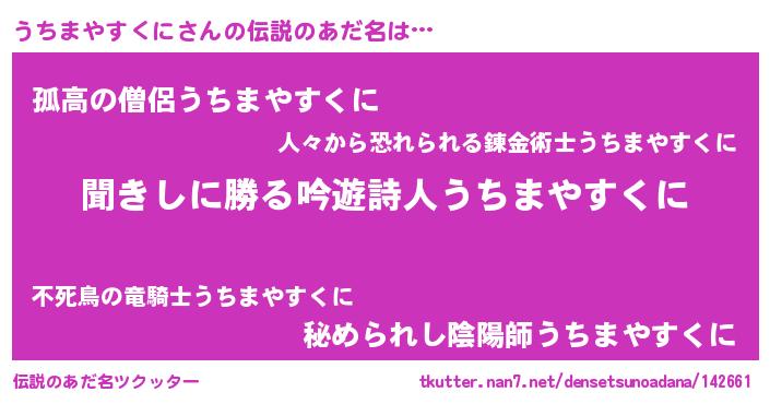 | 男性向けラノベタイトル風あだ名 | 『うちまやすくにという概念が存在しない退屈な世界 』 |