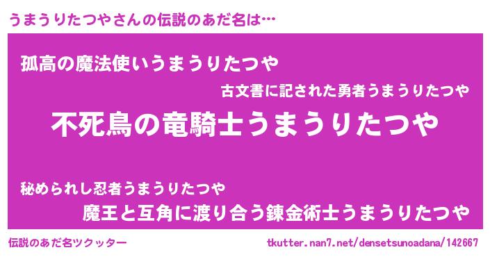 | ヒーロー風カッコイイあだ名 | 『スーパーウマウリタツヤ』 |