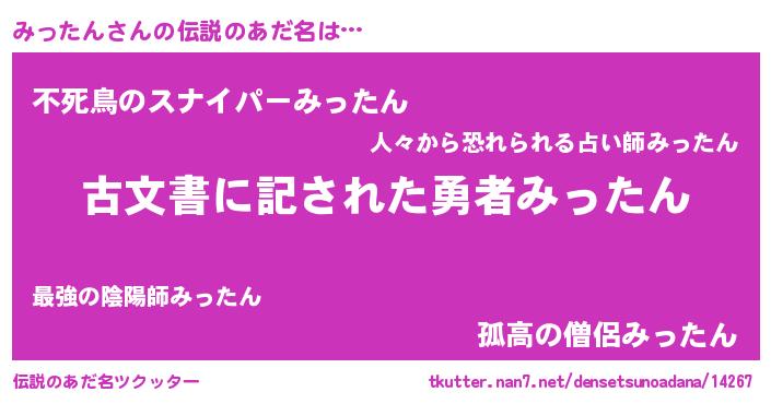 | ヒーロー風カッコイイあだ名 | 『仮面ミッダー』『サイバー戦士ミッタン』 |