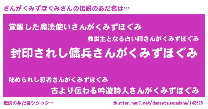 | 胡散臭い通販商品みたいなあだ名 | 『億万長者になれる水晶球…その名も「さんがくみずほぐみ」』 |