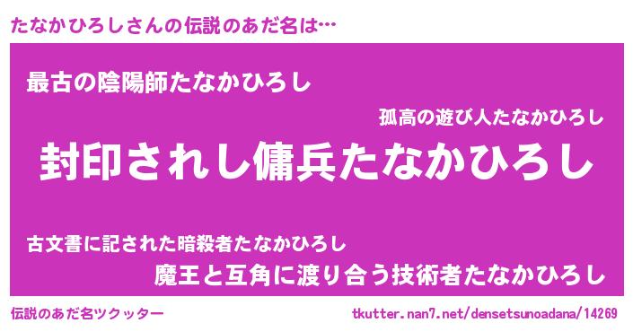 | ヒーロー風カッコイイあだ名 | 『スーパータナカヒロシ』『暗黒騎士タナ』 |