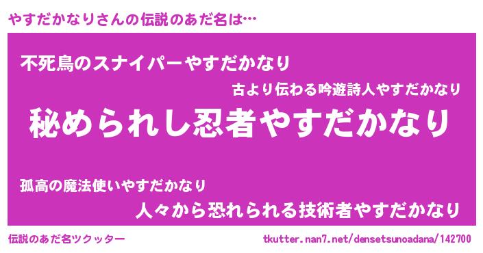 | ファンタジー風あだ名 | 『エターナルヤスダカナリー』 |