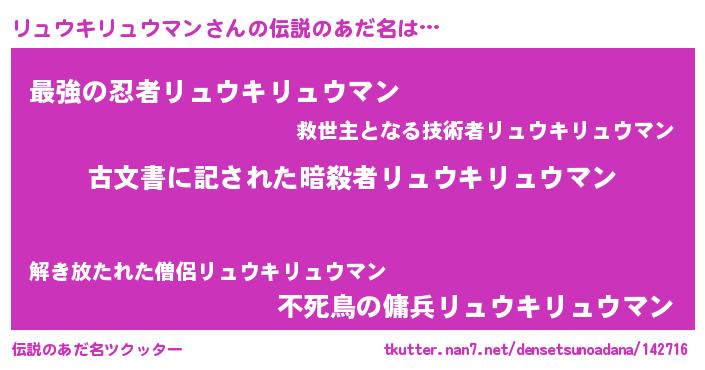 | 意味不明あだ名 | 『永久保存リュウキリュウマン』 |